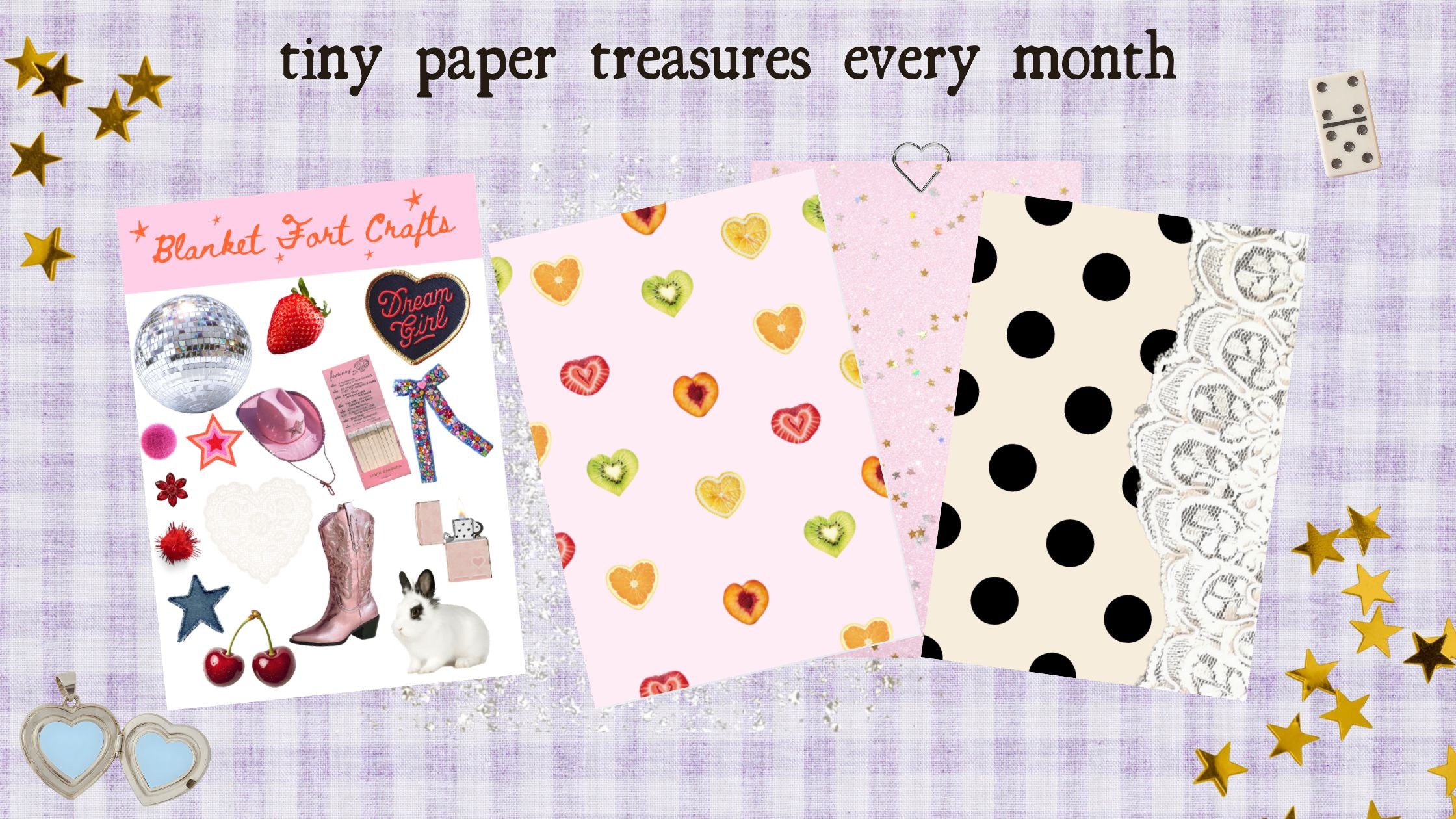 Each month will have a special release of 1 sticker sheet, 3 original paper sheets (size A5), and a mystery ephemera. It's $15 every month to have a surprise arrive on your doorstep.